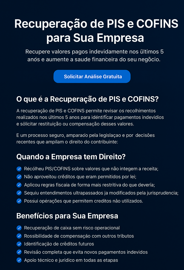 Recuperar impostos pagos indevidamente por empresas de Lucro Real, Lucro Presumido e Simples Nacional (Anexo IV) e Simples Nacional Comércio e Industria com ST, PIS e COFINS monofásico.